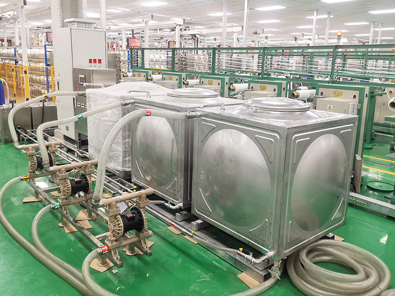 自動(dòng)配料系統(tǒng)是玻璃纖維生產(chǎn)線中的一種設(shè)備,用于自動(dòng)給涂油裝置提供涂油劑。下面是自動(dòng)供油裝置在玻璃纖維生產(chǎn)線中的詳細(xì)描述: 結(jié)構(gòu):自動(dòng)供油裝置通常由涂油劑儲(chǔ)罐、輸送管道、泵、過濾器和控制系統(tǒng)等組成。涂油劑儲(chǔ)罐用于存儲(chǔ)涂油劑,輸送管道將涂油劑從儲(chǔ)罐輸送到涂油裝置,泵用于提供涂油劑的流動(dòng)力,過濾器用于過濾涂油劑中的雜質(zhì),控制系統(tǒng)用于監(jiān)控和調(diào)整供油過程。